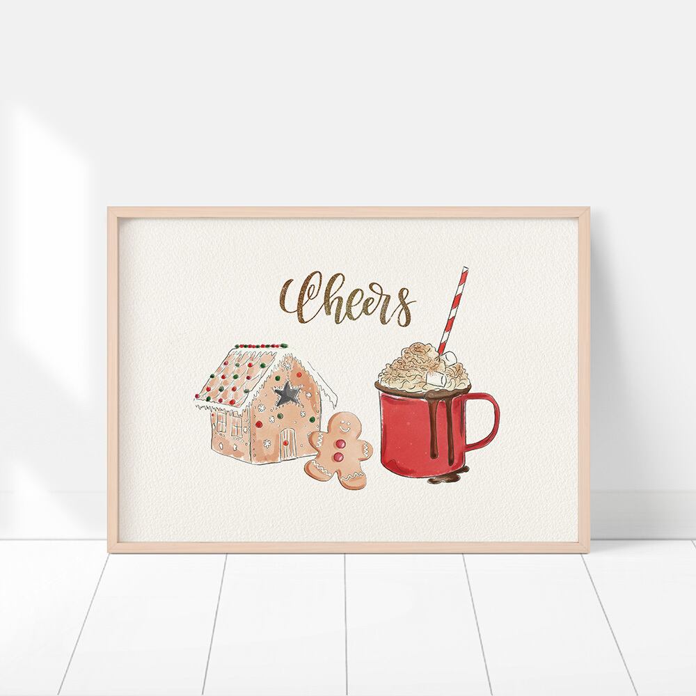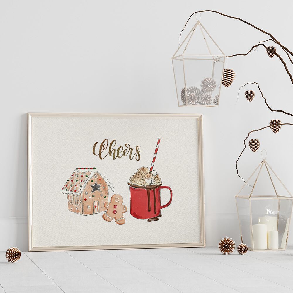 ジンジャークッキーと飲み物のポスター / i1611 / くつ下やツリー リースやガーランドなど インテリアポスター