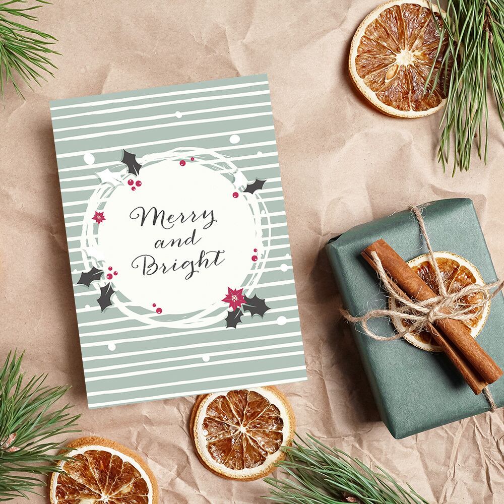 北欧のクリスマスポスターです。サンタクロースやトナカイ、うさぎ、ユニコーン、靴下やプレゼントなどのクリスマスアイテムをモチーフにしています。色味はくすんだブルーやピンク、グレーやエンジなどの、落ち着いた色を使用しています。