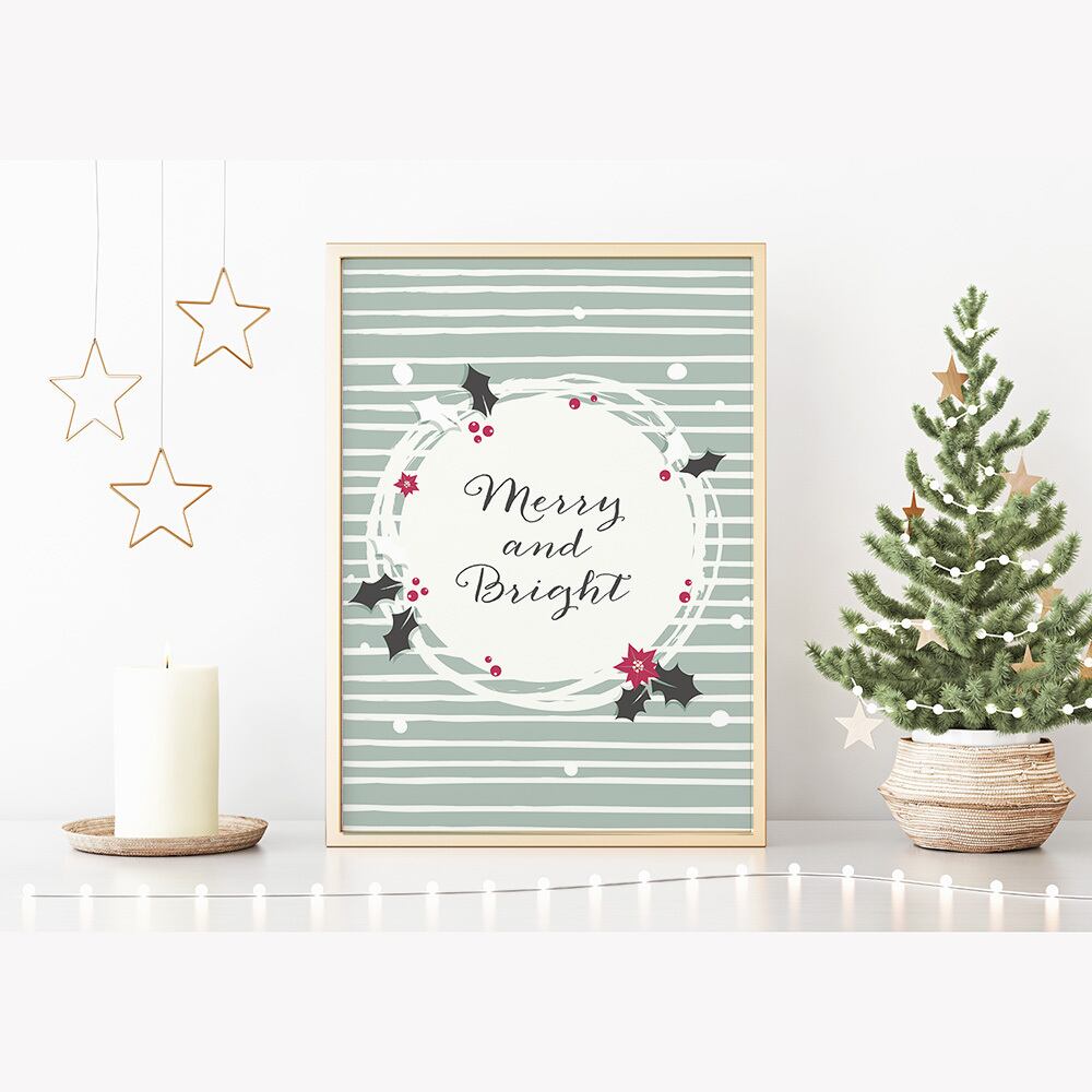 北欧のクリスマスポスター / i1638 / サンタクロースやトナカイ、うさぎ、靴下やプレゼント インテリアポスター