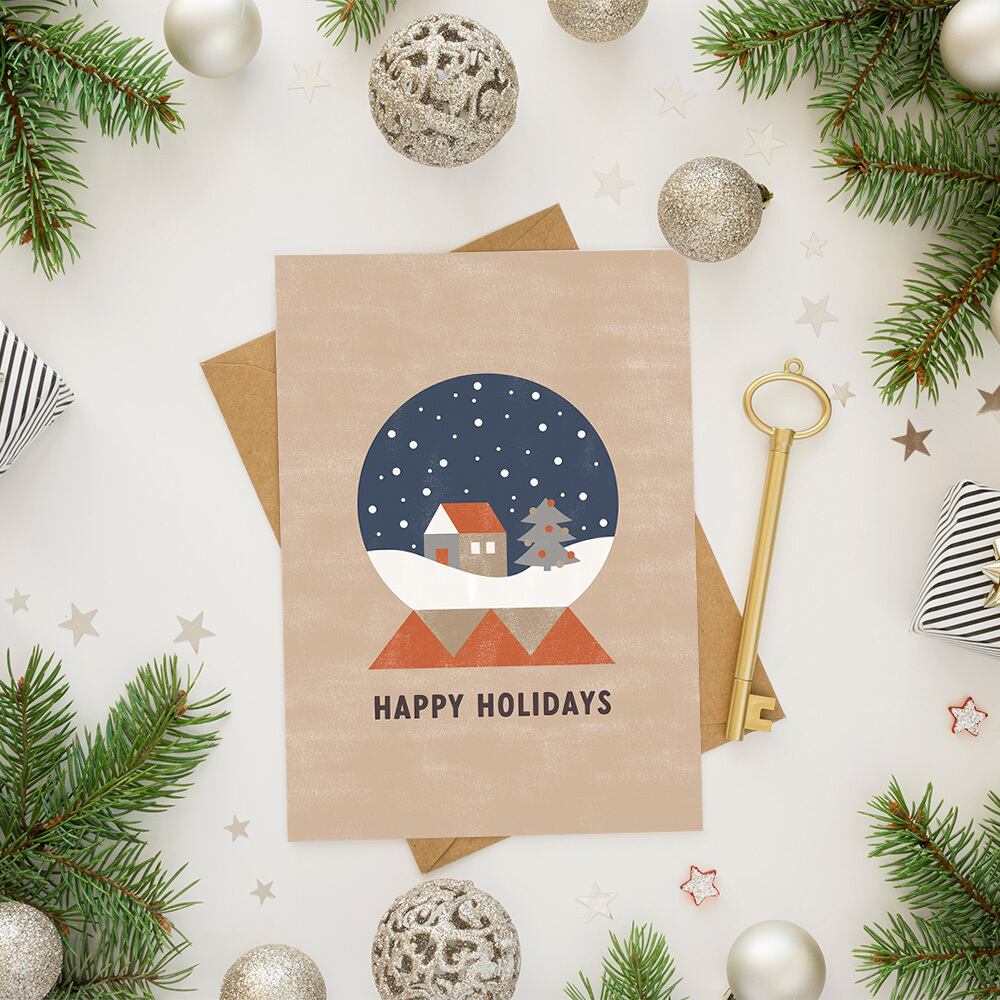 北欧のクリスマスポスター / i1622 / スノードームやオーナメント、ヒイラギや実など インテリアポスター