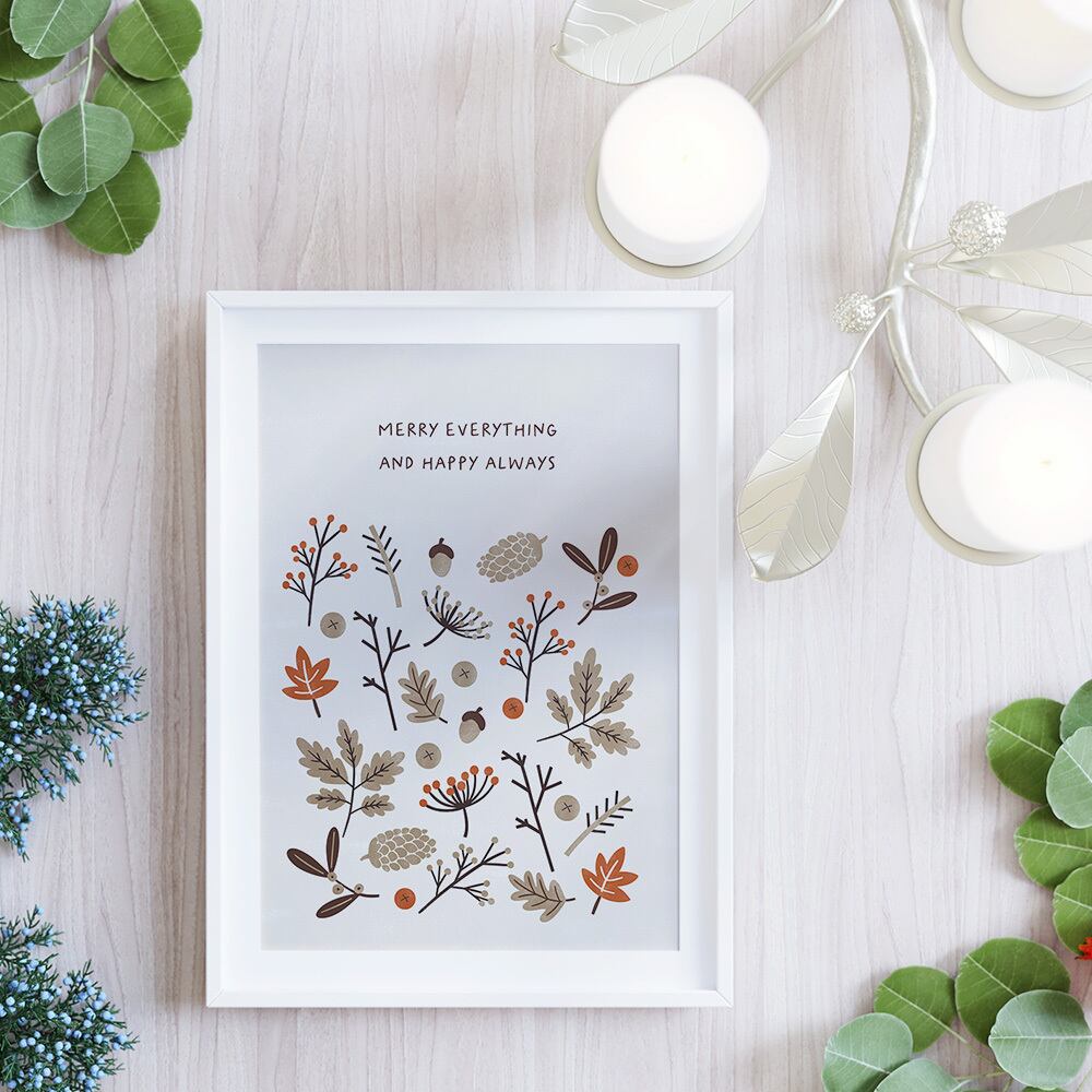 北欧のクリスマスポスター / i1626 / スノードームやオーナメント、ヒイラギや実など インテリアポスター