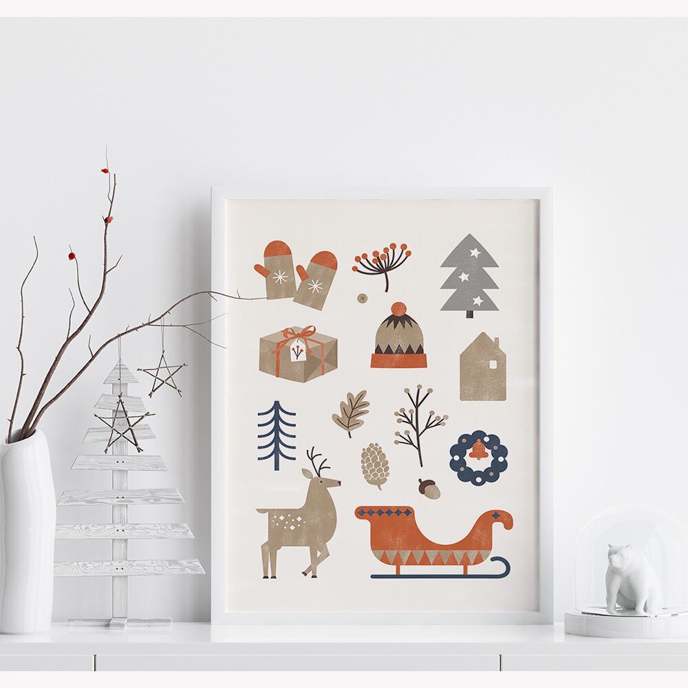 北欧のクリスマスポスター / i1629 / スノードームやオーナメント、ヒイラギや実など インテリアポスター