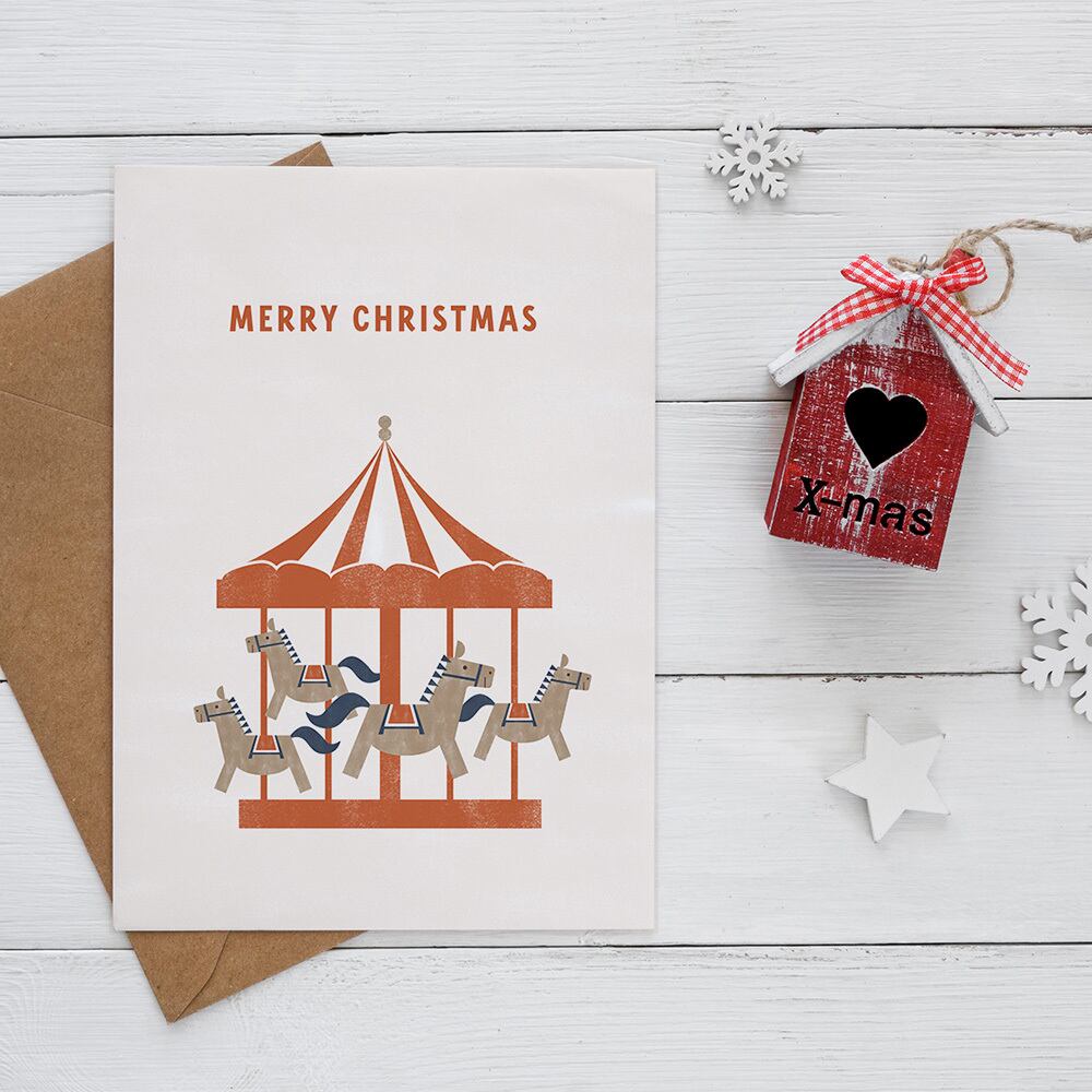 北欧のクリスマスポスターです。サンタクロースやトナカイ、うさぎ、ユニコーン、靴下やプレゼントなどのクリスマスアイテムをモチーフにしています。色味はくすんだブルーやピンク、グレーやエンジなどの、落ち着いた色を使用しています。