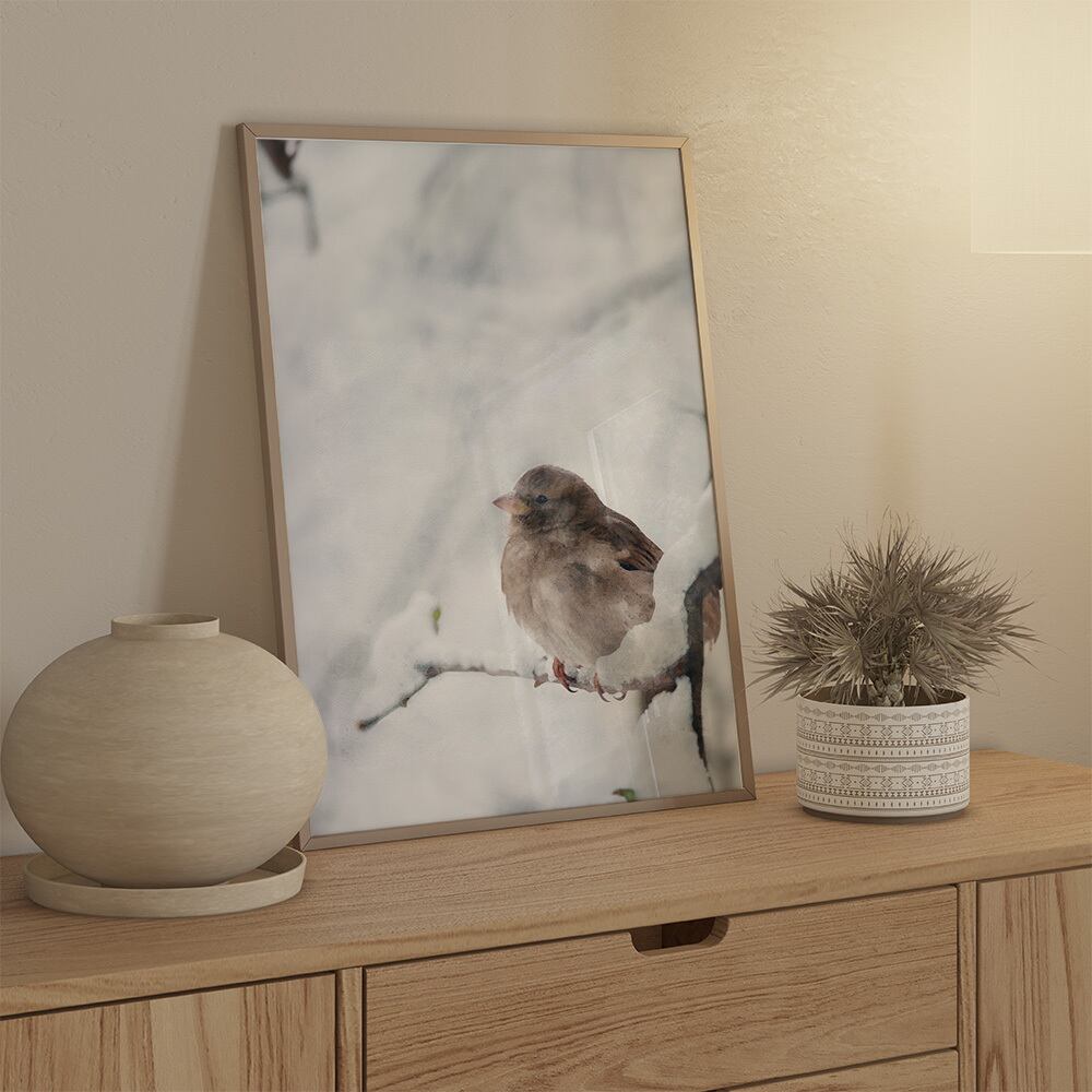 冬の小鳥のポスター / i1651 / 雪が降り積もった冬の森 動物たち インテリアポスター