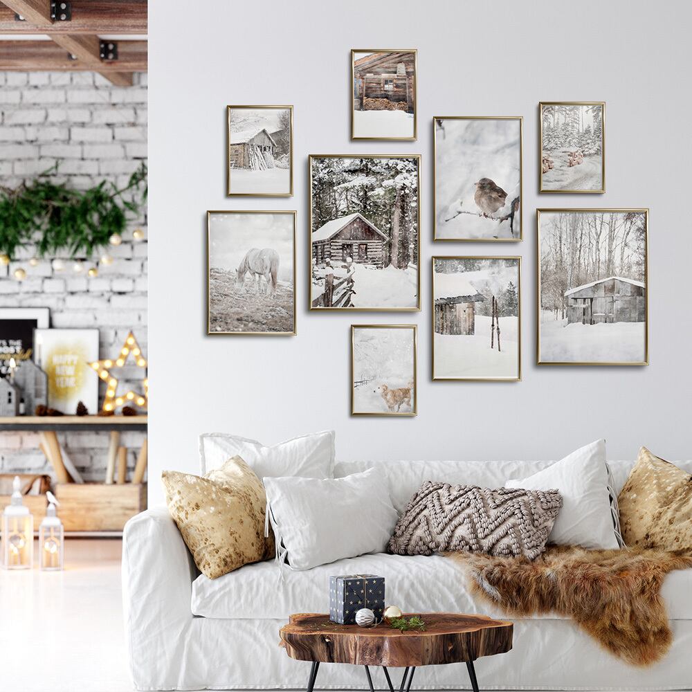 雪に覆われた美しい風景のポスターです。写真をモチーフに、少々水彩画風の加工が施されています。
