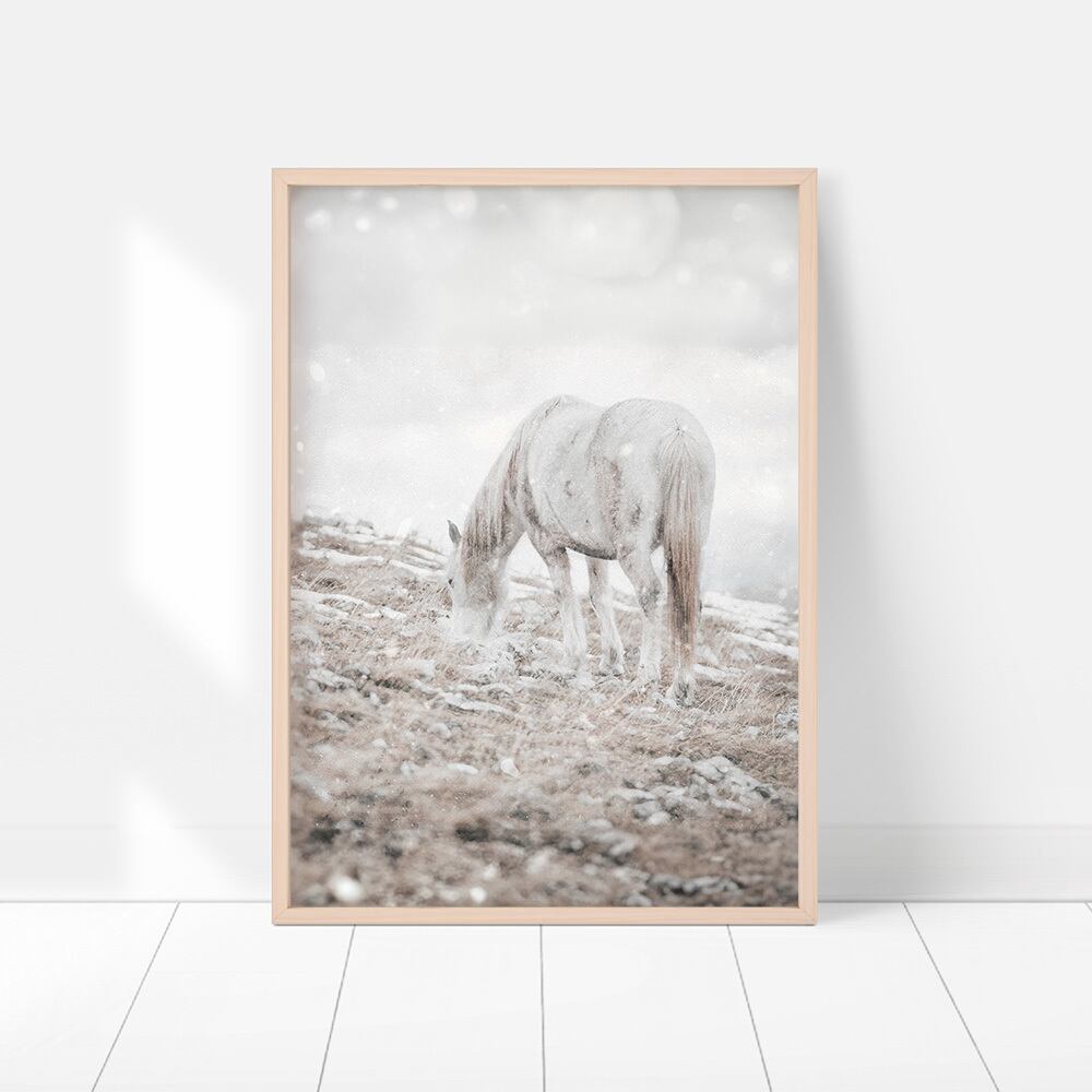 白い馬のポスター / i1654 / 雪が降り積もった冬の森 動物たち インテリアポスター