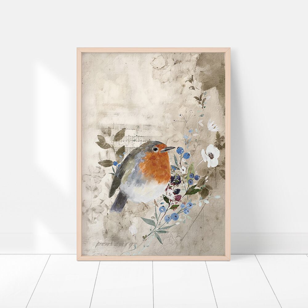 小鳥のポスター / i1660 / 冬の花に彩られた動物たち アンティーク調 インテリアポスター