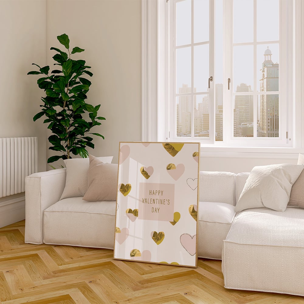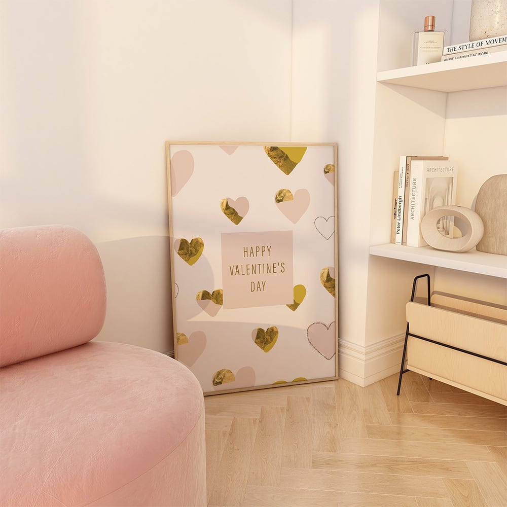 バレンタインにぴったりな、ハートをモチーフにしたポスターです。ピンクベージュを基調としていますので、可愛いながらもどこか落ち着いた雰囲気があります。