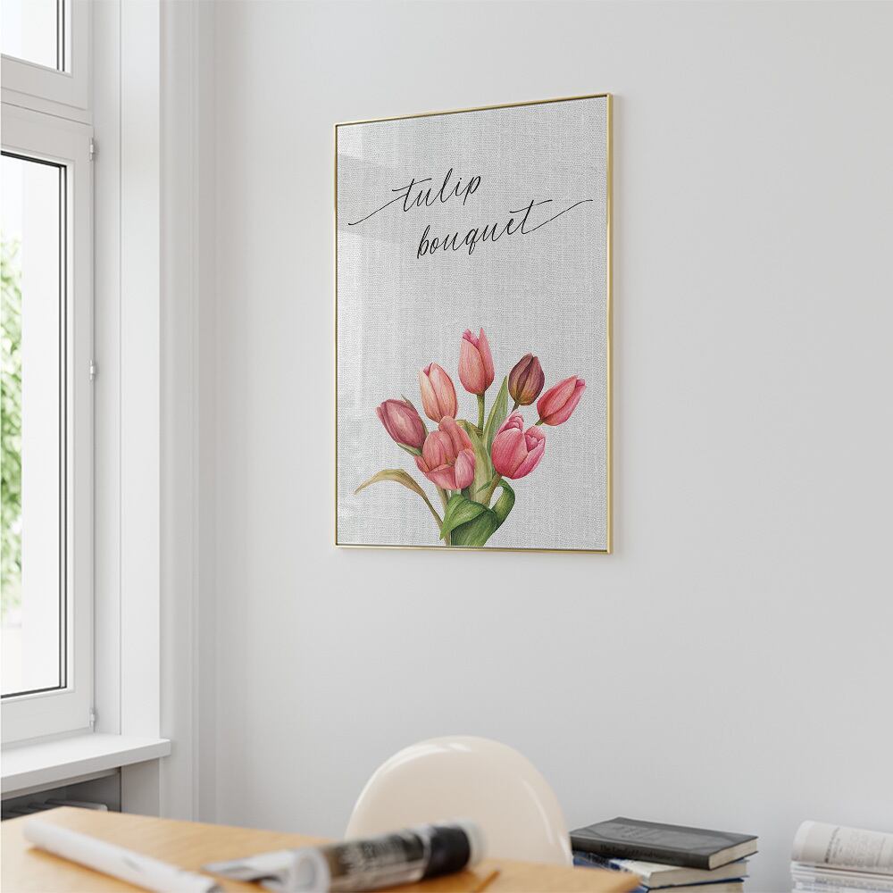 春のチューリップポスター / i1685 / ピンク、紫、黄色のチューリップ インテリアポスター