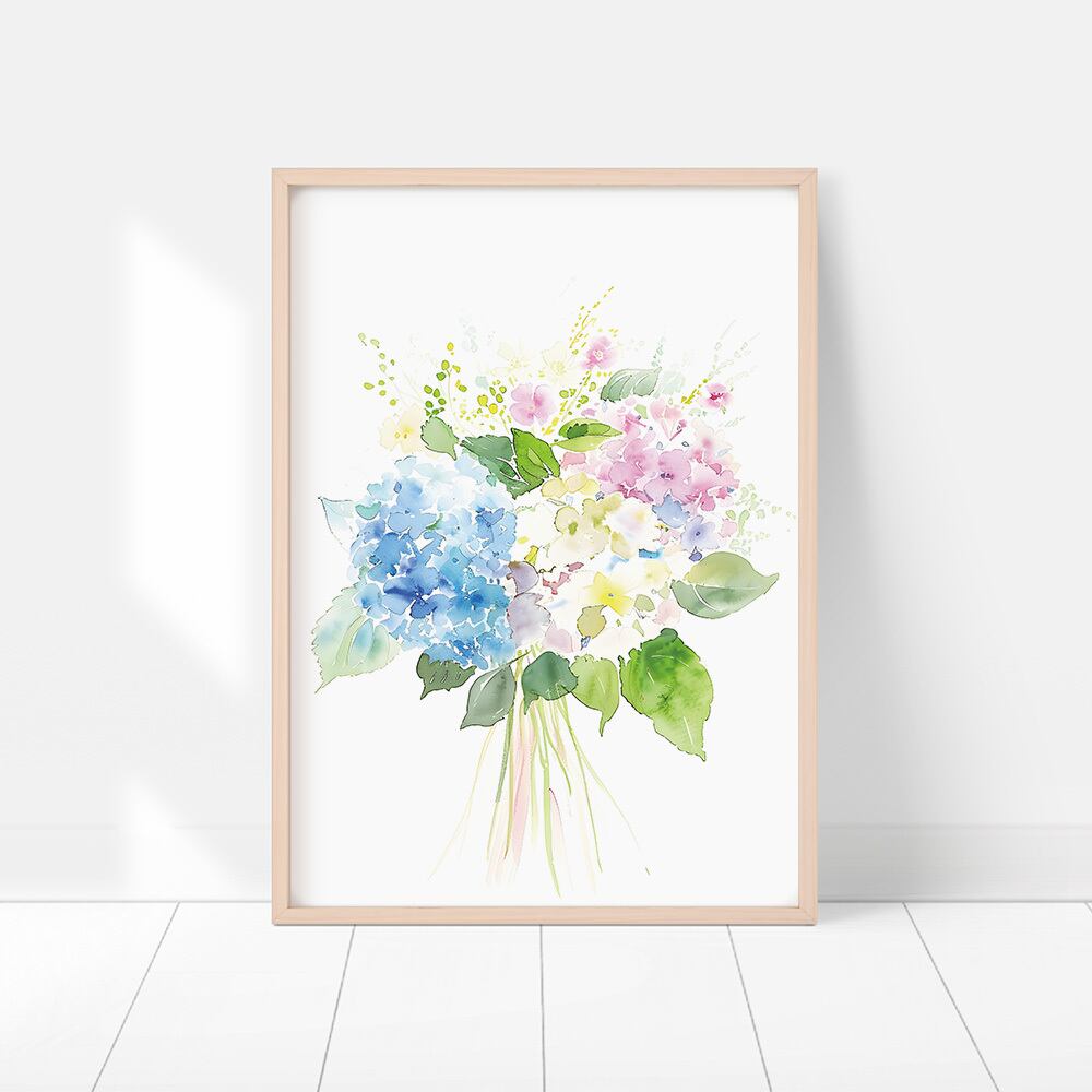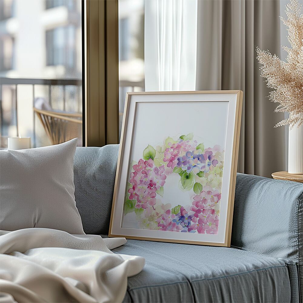 あじさいのリースのポスター / i1768 / 梅雨の紫陽花 水彩画 インテリアポスター